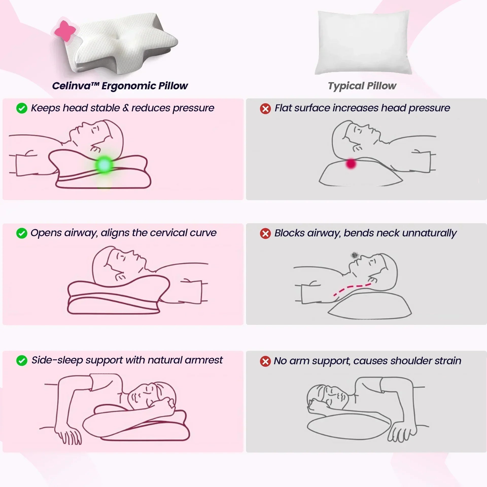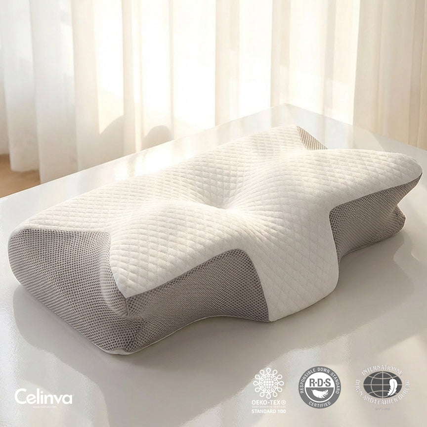 The Celinva™ Ergonomic Sleep Pillow uses a butterfly-contour shape that keeps your neck in natural alignment and your head comfortably centered.