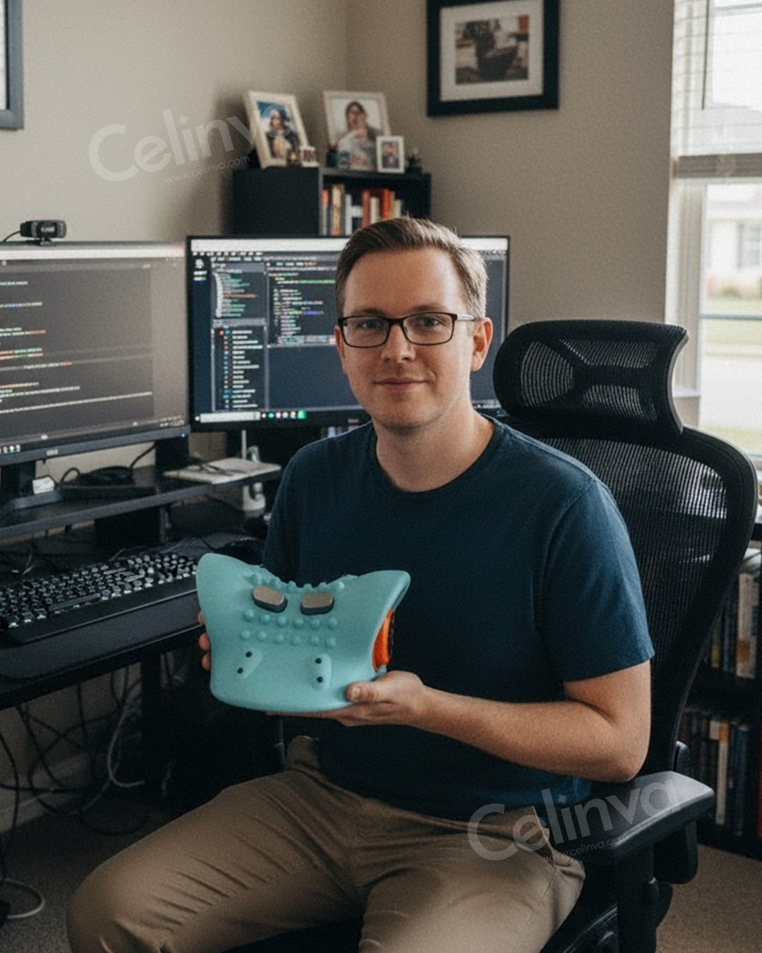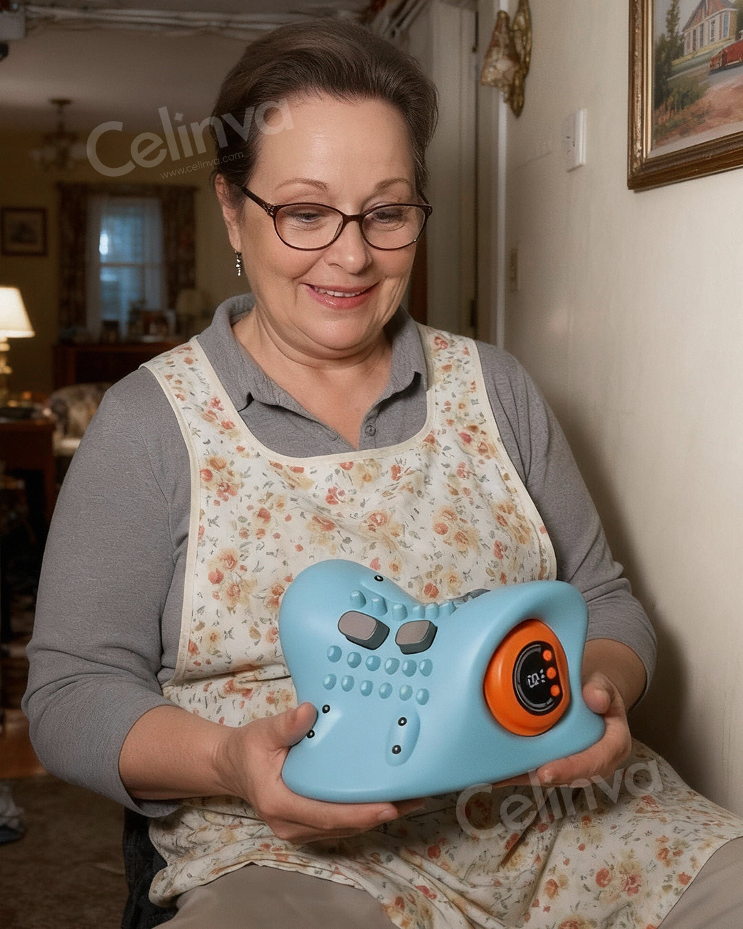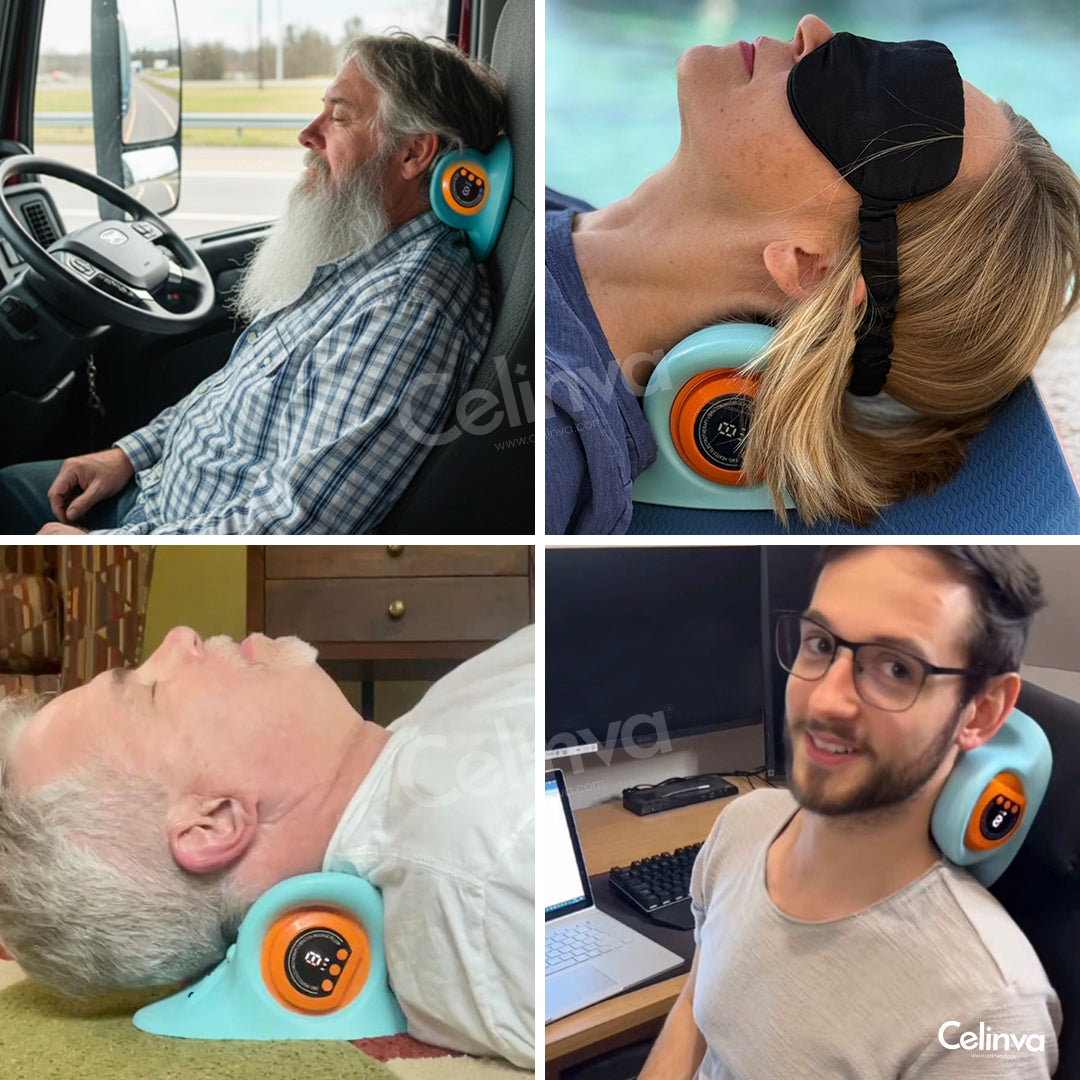 The Celinva™ 4-in-1 Therapy Massager restores balance with a 26° ergonomic curve that supports your cervical spine while soothing heat and EMS micro-pulses relax deep-set tension.